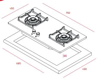 • Khoảng cách lắp đặt: Đảm bảo lỗ khoét đá đạt chuẩn 750 x 450 mm để bếp không bị vênh.