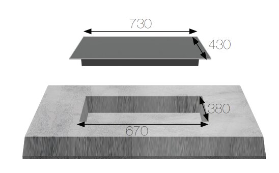 | Kích thước khoét đá | 685 x 365 mm |