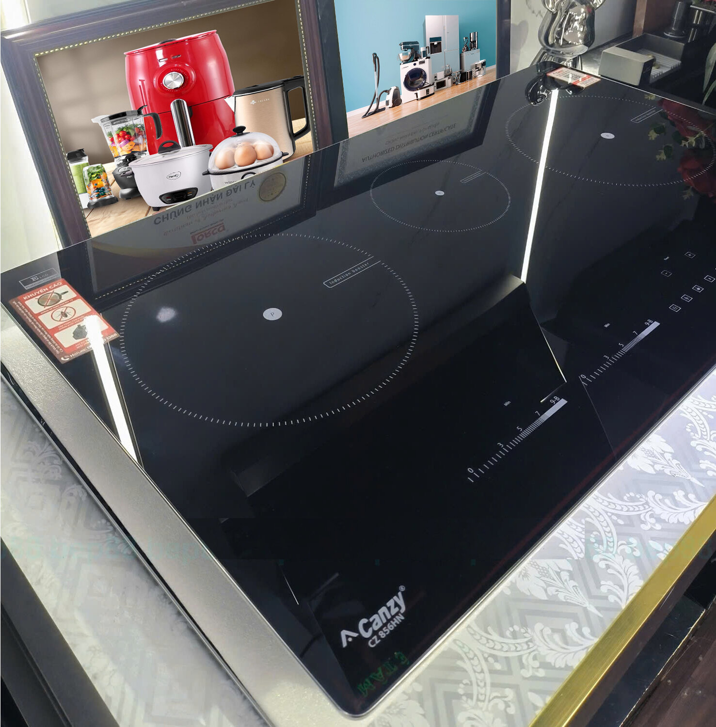 Trong phân khúc bếp từ 3 vùng nấu dáng dài, Canzy CZ-856HN nổi bật như một thiết bị đa năng, giải quyết bài toán nấu nướng khối lượng lớn cho gia đình Việt. Điểm mạnh của model này không chỉ nằm ở kích thước mặt kính rộng rãi 780x450mm mà còn ở hệ thống linh kiện đạt tiêu chuẩn chất lượng Châu Âu, đảm bảo vận hành bền bỉ và an toàn.