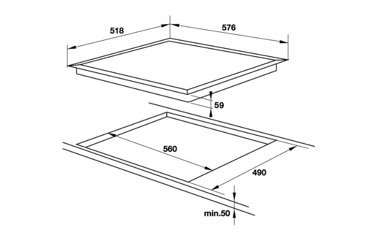 Bạn bắt buộc phải sử dụng dây nguồn tiết diện từ 4.0mm² đến 6.0mm² và kết nối qua Aptomat (CB) tối thiểu 40A. Với kích thước khoét đá 560x490mm, hãy đảm bảo bàn đá có độ dày tối thiểu 30mm để chịu được sức nặng và nhiệt lượng tỏa ra khi vận hành cả 4 vùng nấu.