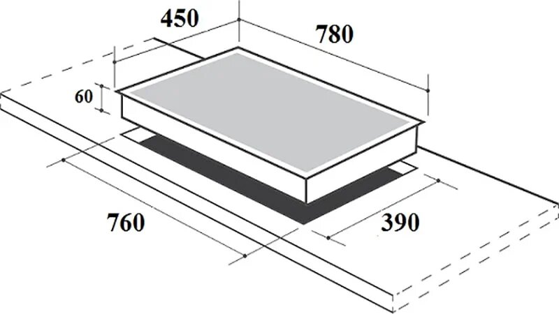 • Lưu ý khoét đá: Do kích thước bề mặt bếp khá lớn (780x450mm), hãy đảm bảo kích thước khoét đá chuẩn 760x390mm và kiểm tra độ chịu lực của mặt bàn đá trước khi lắp đặt bếp ba.