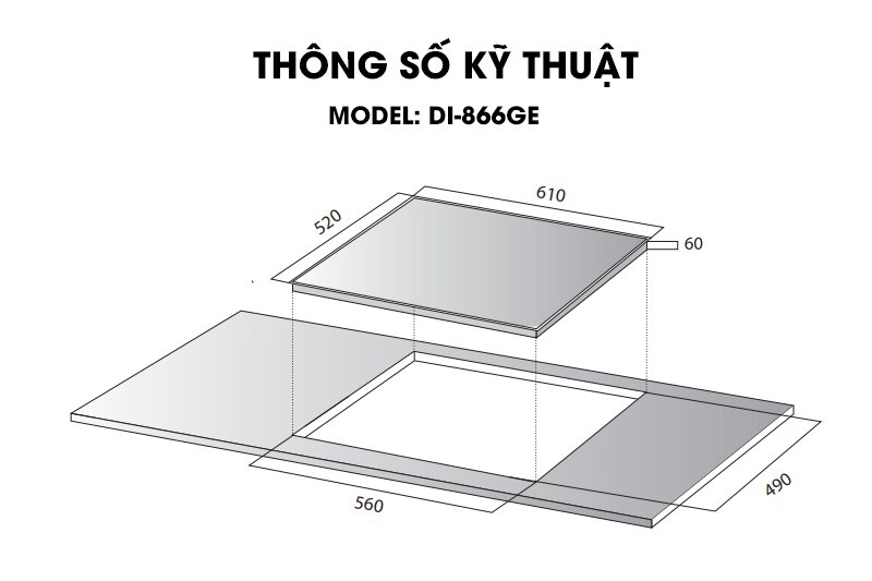 Kích thước khoét đá: 560 × 490 mm