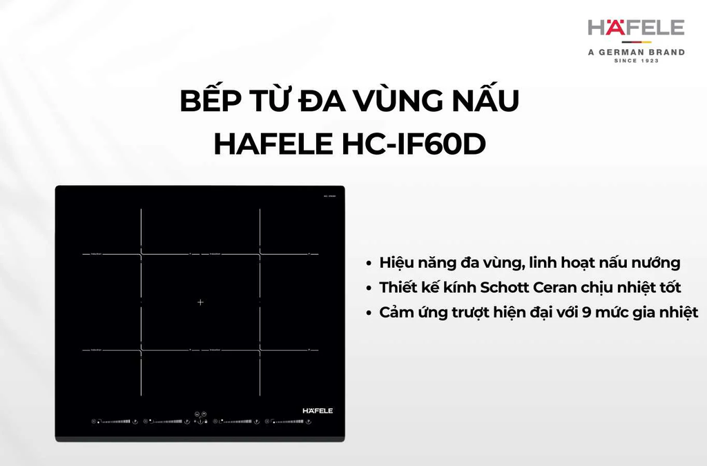 Hafele HC-IF60D - 536.01.911 là minh chứng cho sự kết hợp hoàn hảo giữa công nghệ "không giới hạn" và thẩm mỹ Châu Âu. Nếu bạn tìm kiếm một chiếc bếp mạnh mẽ, linh hoạt tuyệt đối cho mọi kích cỡ nồi chảo, đây chính là sự đầu tư xứng đáng nhất cho gian bếp thượng lưu.
