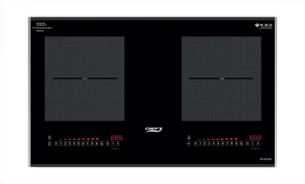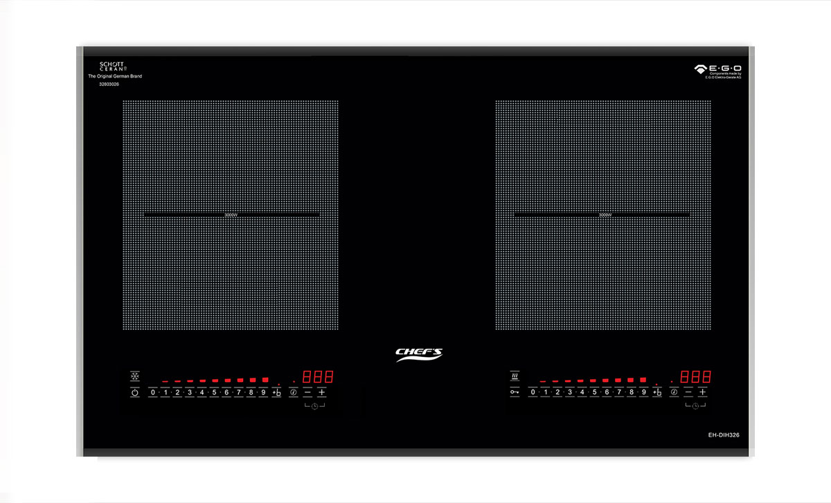 Thiết bị bếp từ Chef's EH-DIH326 là dòng bếp đôi được lắp ráp tại Việt Nam với hệ thống linh kiện nhập khẩu từ hãng E.G.O. Sản phẩm được thiết kế theo các tiêu chuẩn kỹ thuật nhằm phục vụ nhu cầu nấu nướng hàng ngày với giao diện điều khiển riêng biệt cho từng vùng nấu và các chế độ hỗ trợ người dùng được thiết lập sẵn.