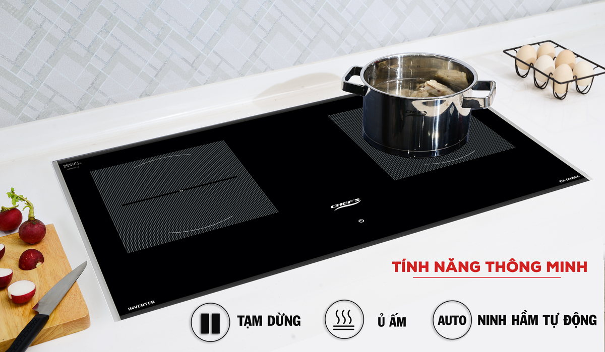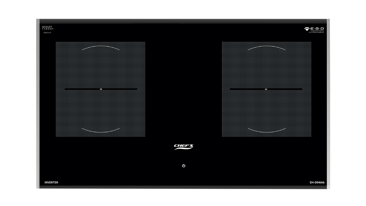 Thiết bị bếp từ Chef's EH-DIH666 là dòng bếp đôi được lắp ráp tại Việt Nam dựa trên hệ thống linh kiện nhập khẩu từ hãng E.G.O. Sản phẩm được thiết kế với các tiêu chuẩn kỹ thuật hiện đại, phục vụ nhu cầu nấu nướng hàng ngày với giao diện điều khiển tập trung và các chế độ nấu được lập trình sẵn.