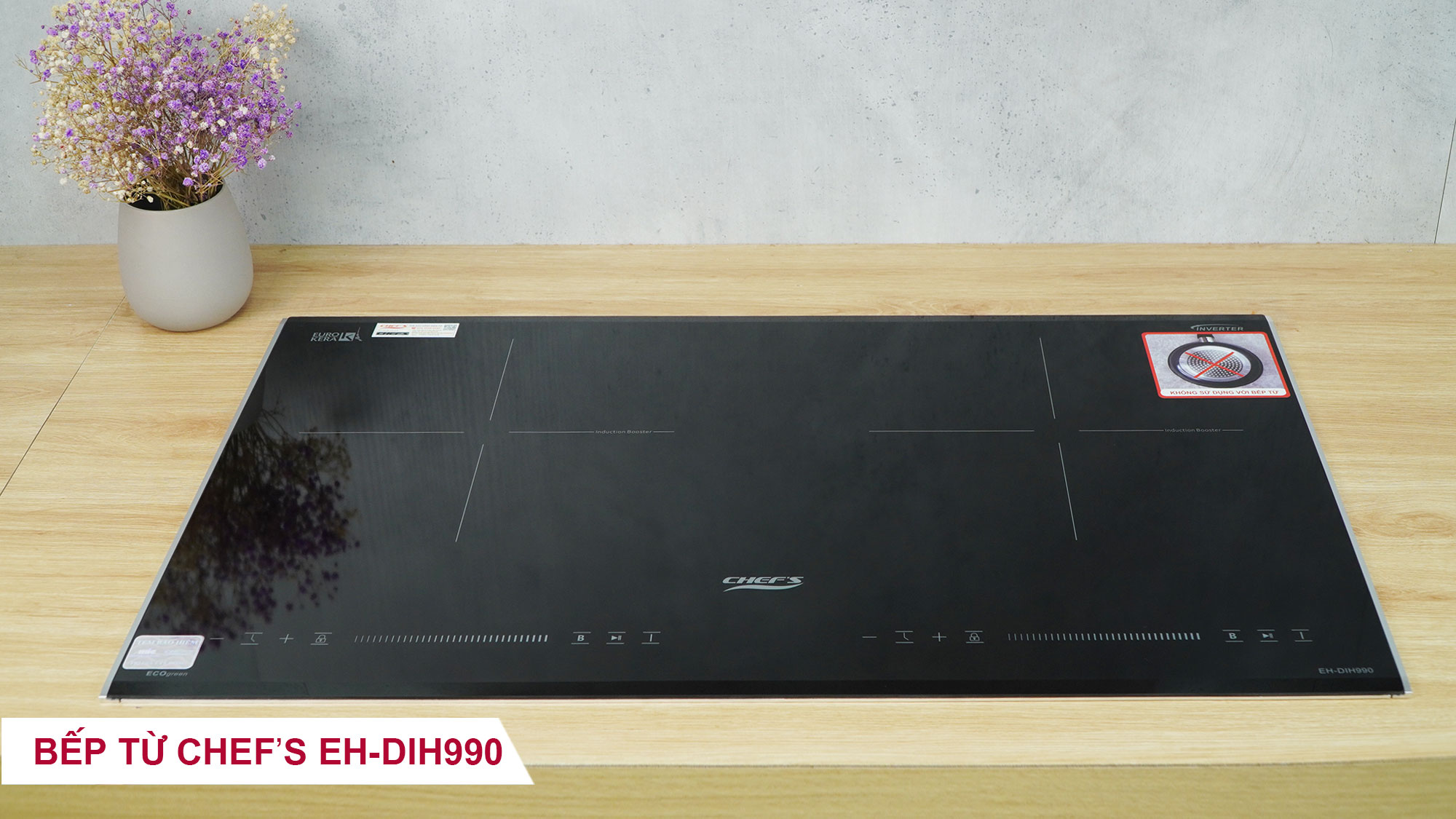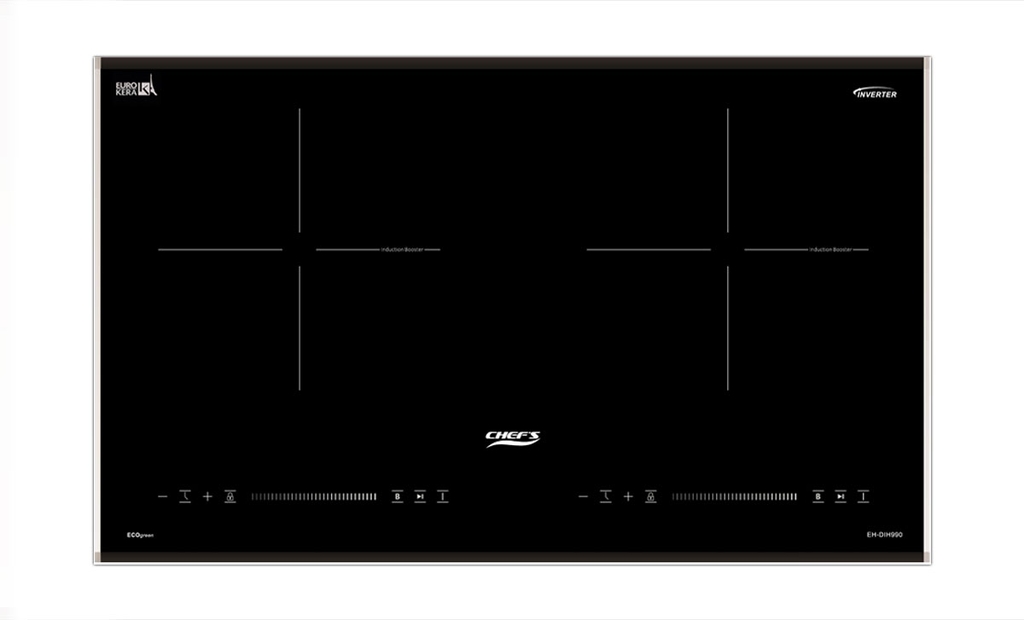 Thiết bị bếp từ Chef's EH-DIH990 là dòng bếp đôi được lắp ráp tại Việt Nam theo các tiêu chuẩn kỹ thuật Châu Âu. Sản phẩm nổi bật với cấu trúc công suất độc lập cho từng vùng nấu, kết hợp giữa mặt kính cao cấp của Pháp và hệ thống mâm từ thế hệ mới từ Đức, đáp ứng nhu cầu đun nấu nhanh và an toàn.