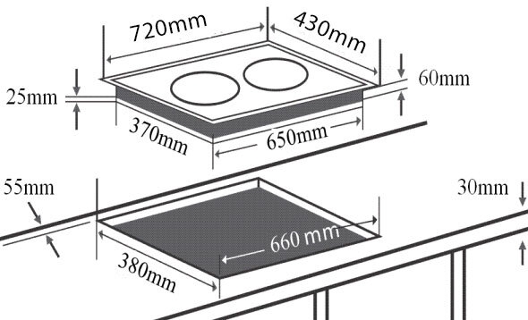 | Kích thước bếp | 720 x 430 x 60 mm |