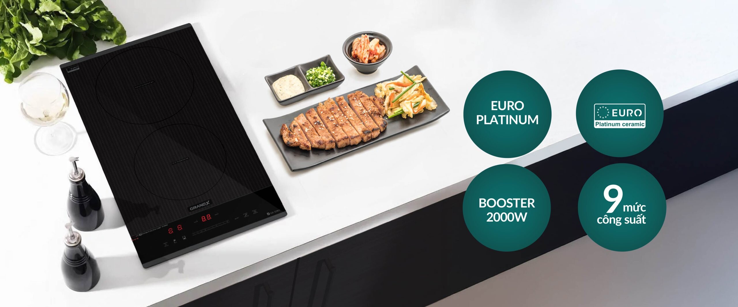 GrandX GX ID505 sở hữu kiểu dáng Domino với 2 vùng nấu đặt dọc, cực kỳ phù hợp cho các gian bếp nhỏ, quầy bar hoặc lắp đặt phối hợp (combo) với bếp gas, bếp hồng ngoại. Mặt kính EURO Platinum cao cấp với khả năng chịu lực, chịu nhiệt vượt trội là điểm nhấn thẩm mỹ đắt giá. Thiết kế vát 2 cạnh trước và sau giúp bếp ôm sát mặt đá, tạo nên vẻ đẹp liền mạch và giúp việc vệ sinh dầu mỡ sau khi nấu trở nên dễ dàng hơn bao giờ hết.