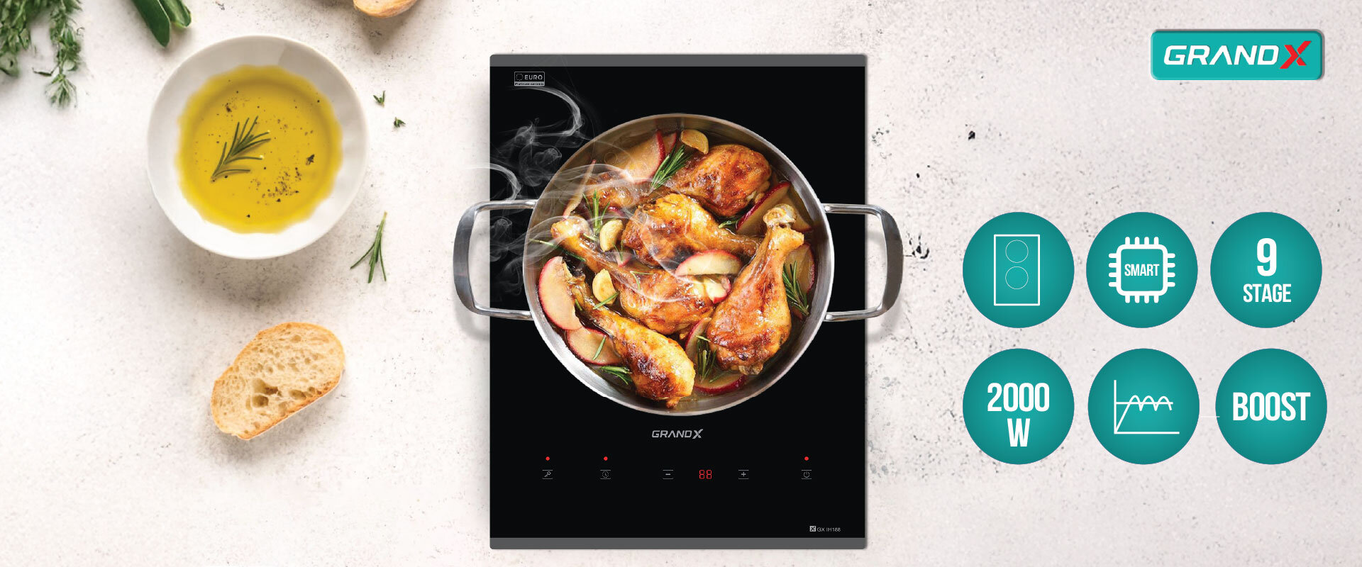 Bếp từ đơn GrandX GX IH188 – Bếp từ đơn âm nhỏ gọn, mạnh mẽ, chuẩn Malaysia