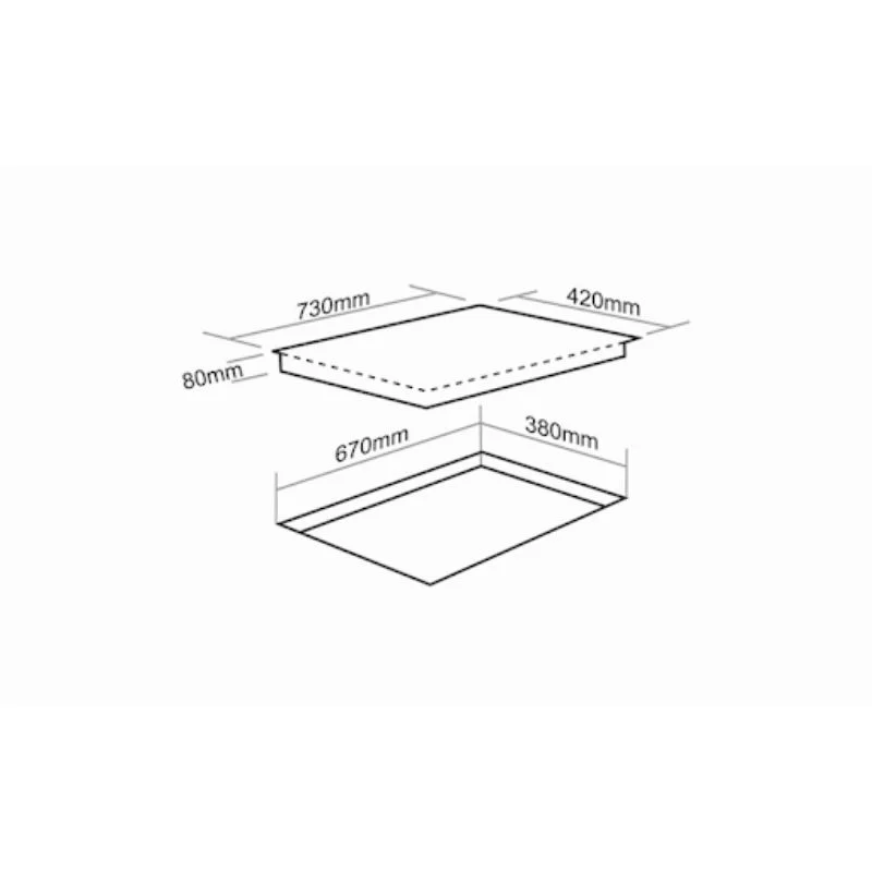 Kích thước lắp âm: Thiết kế chuẩn 730 x 420 mm, tạo diện mạo phẳng, sang trọng và dễ dàng vệ sinh sau khi sử dụng.