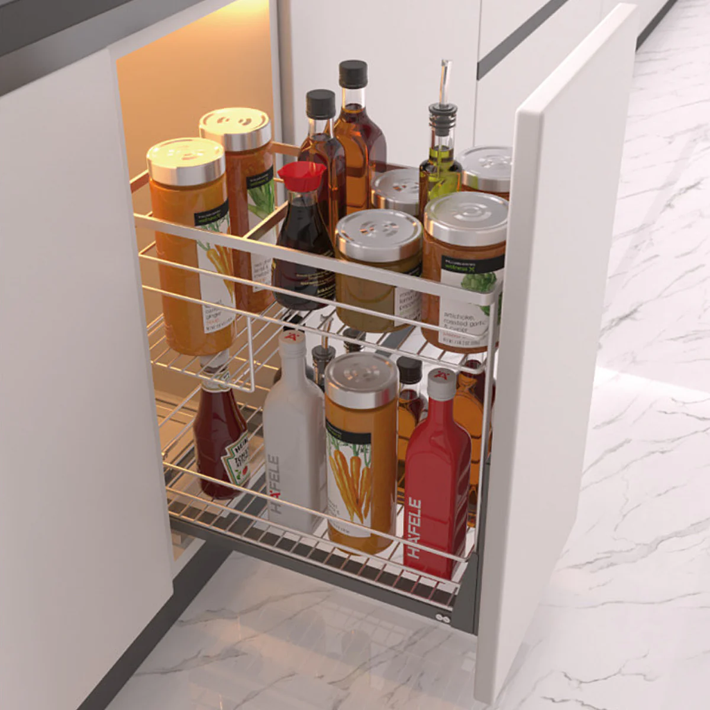Bộ rổ gia vị Hafele Sonata 200mm là giải pháp "ăn chắc mặc bền" cho mọi căn bếp. Kitchen Xanh cam kết phân phối hàng chính hãng Hafele, hỗ trợ lắp đặt chuyên nghiệp và bảo hành 2 năm toàn quốc.