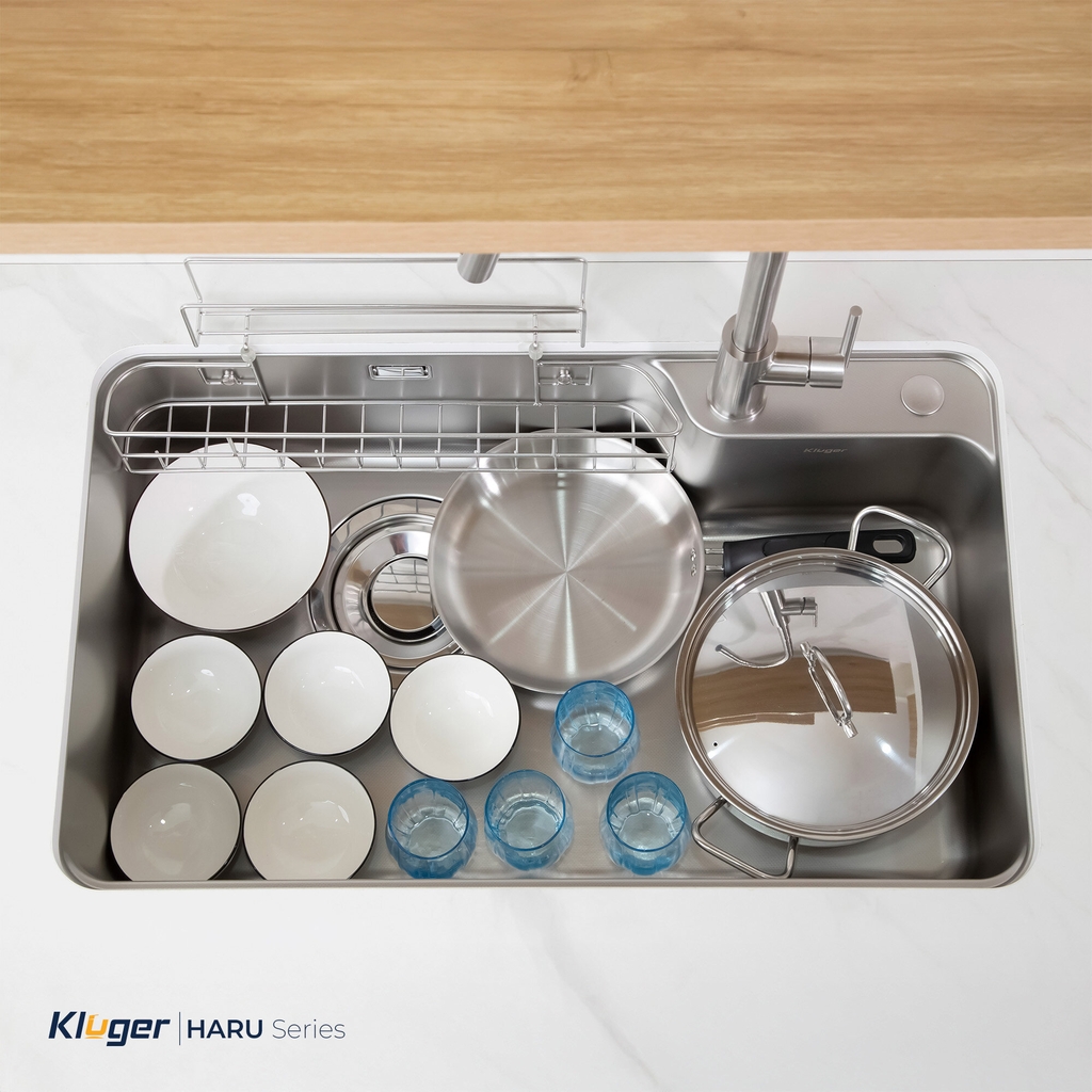 Đại diện tiêu biểu cho bộ sưu tập HARU Series mới nhất, Kluger KH8050FS Ulti là sự hội tụ của nghệ thuật thiết kế và công nghệ sản xuất liền khối từ thép POSCO 304. Với phiên bản "Ulti" cao cấp, Kluger mang đến một giải pháp bồn rửa một ngăn lớn 800mm, giúp mọi thao tác nội trợ từ rửa tráng đến sơ chế diễn ra liền mạch. Sản phẩm không chỉ kế thừa tinh thần bền bỉ mà còn nâng tầm trải nghiệm nhờ bề mặt Linen chống xước vượt trội, được phân phối và bảo trợ bởi hệ thống Chính hãng Kluger.