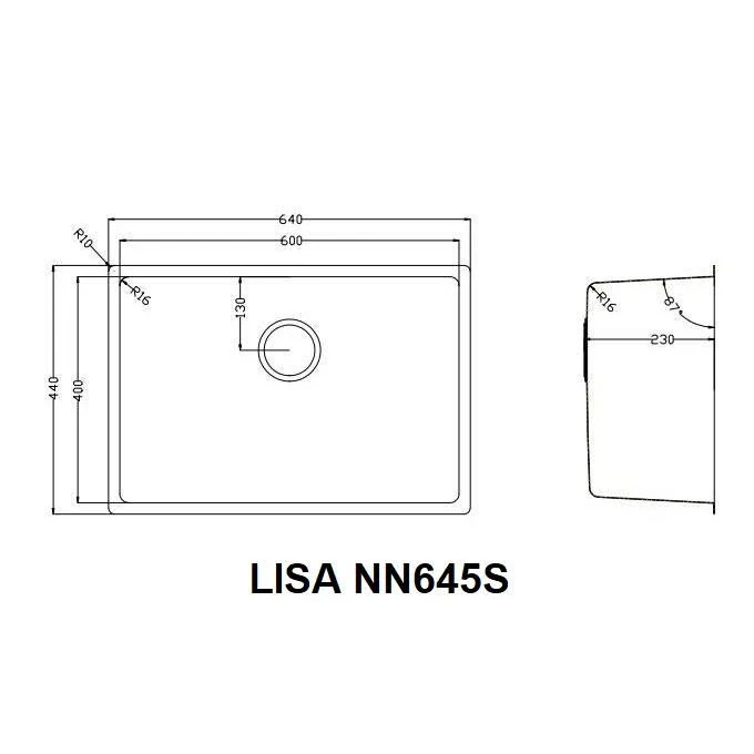 Với kích thước 640 x 440 x 230 mm, chậu mang lại lòng hố sâu và rộng, giúp bạn thoải mái rửa các loại xoong nồi cỡ lớn mà không lo bắn nước. Các góc được bo tròn R16 mềm mại, giúp việc lau chùi dầu mỡ và cặn bẩn ở các góc khuất trở nên cực kỳ nhanh chóng.