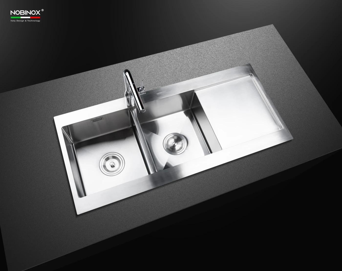 Chậu rửa bát Nobinox Liken NL749 – Đẳng cấp chậu 2 hố cân kèm bàn chờ Size Đại