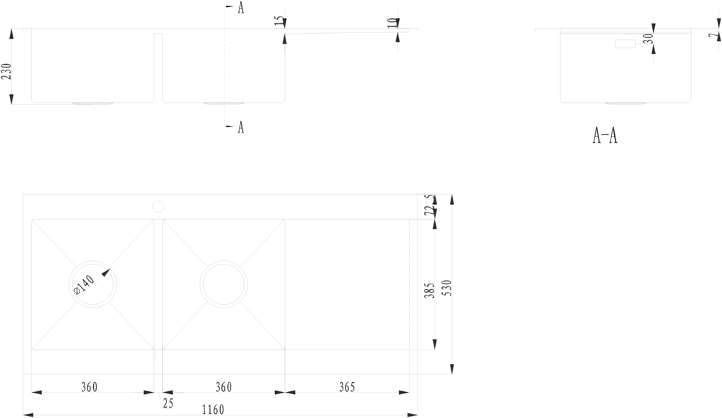 2 Hố cân đối: Giúp bạn dễ dàng phân chia công việc, ngâm rửa bát đĩa và sơ chế thực phẩm song song.
