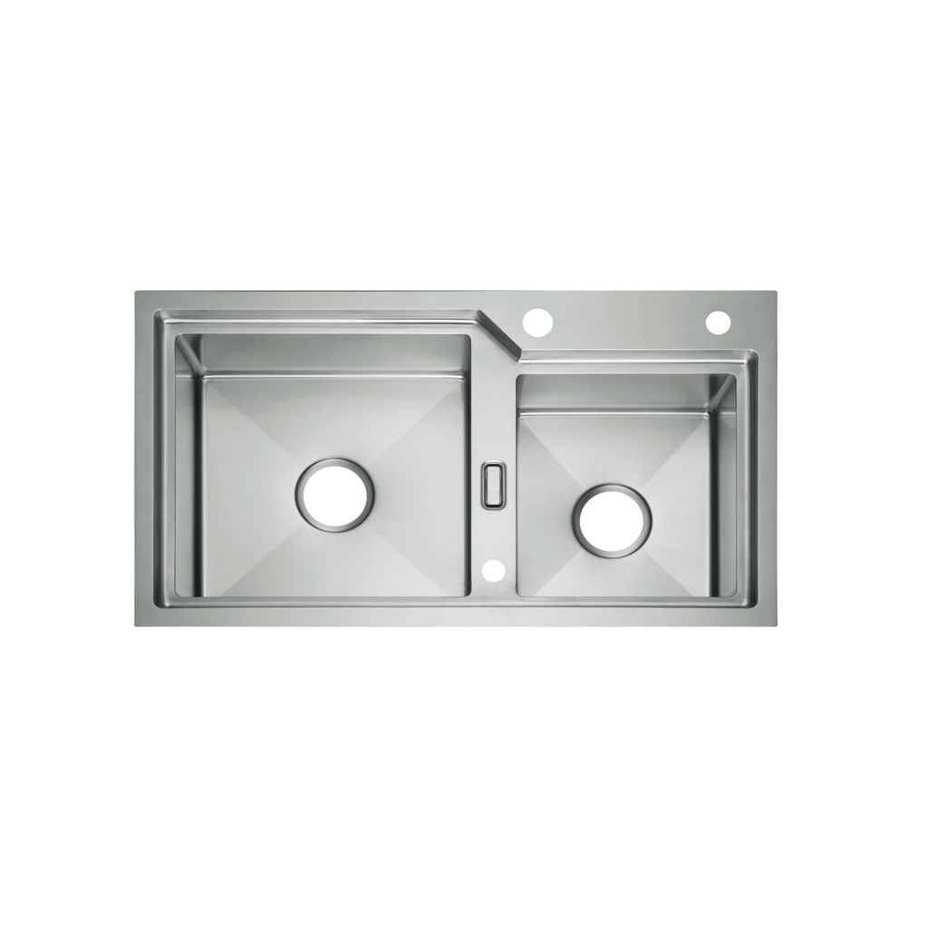 Sản phẩm được thiết kế với cấu trúc 2 hố không đối xứng (một lớn, một nhỏ) giúp tối ưu hóa lượng nước và diện tích sử dụng: