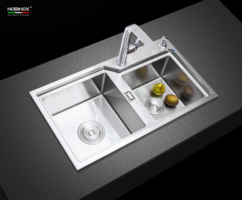 Đánh giá Chậu rửa bát Nobinox Lumia NJ512 - 2 hố lệch, Inox 304 Posco siêu dày