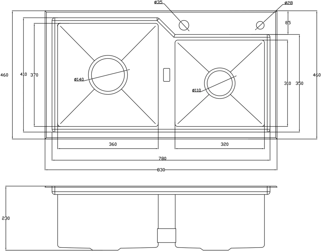 Lòng chậu sâu 230mm: Gia tăng dung tích chứa và hạn chế bắn nước tung tóe ra sàn nhà khi sử dụng áp lực nước mạnh.