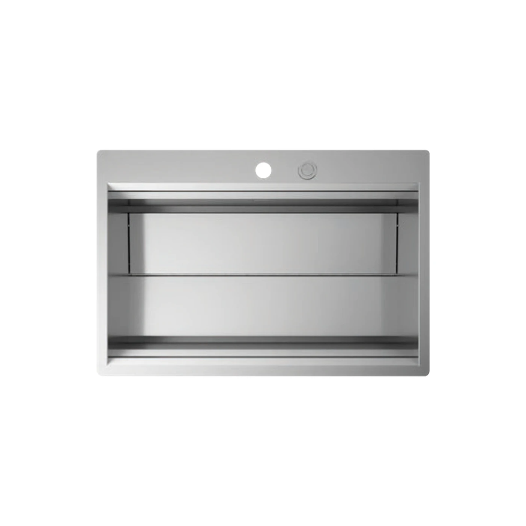 Artinox Mose NA808 được trang bị nút nhấn On-Off xả nước ngay trên mặt chậu. Thay vì phải cho tay xuống lòng chậu đầy nước bẩn để nhấc bát rác, bạn chỉ cần một cái nhấn nhẹ để đóng/mở nước. Đây là tính năng cao cấp thường chỉ xuất hiện trên các dòng thiết bị bếp hạng sang, mang lại sự tiện lợi và vệ sinh tuyệt đối.