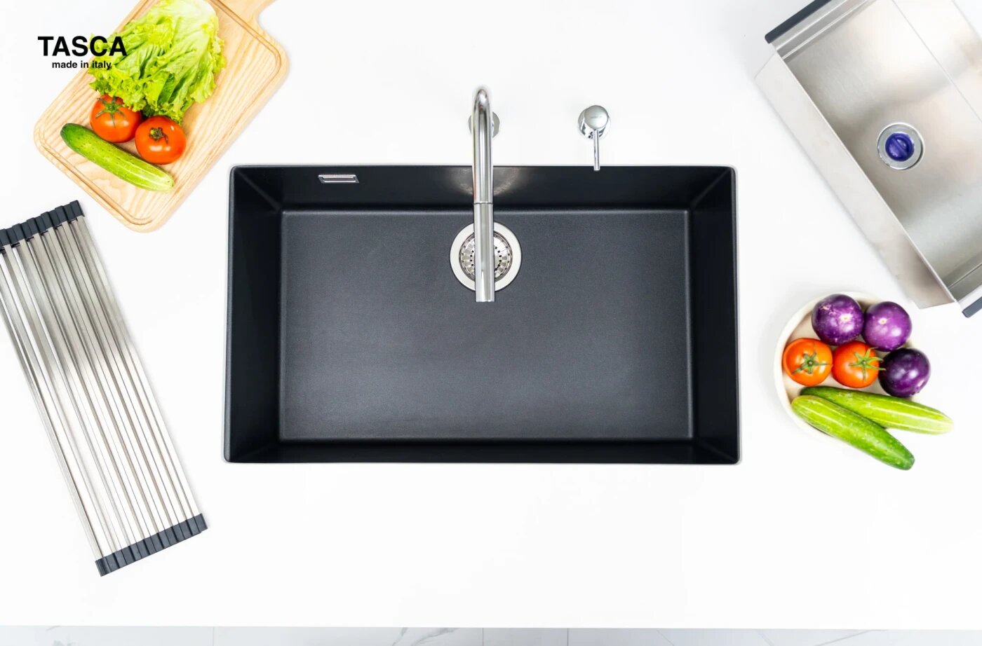 • Khả năng chịu nhiệt lên tới 345°C: Chậu đá Tasca thách thức mọi cú sốc nhiệt, đảm bảo không phai màu hay nứt vỡ ngay cả khi bạn đổ nước sôi hoặc đặt xoong nồi nóng trực tiếp lên bề mặt thường xuyên.