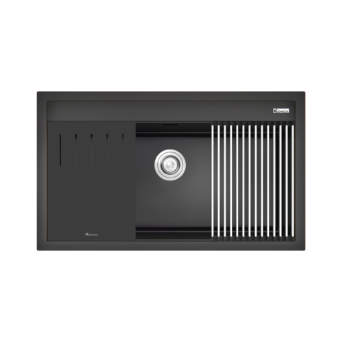 Chậu rửa bát đá Granite Sink Terra 860S Black thuộc bộ sưu tập chậu vòi đá cao cấp của Konox, mang đậm dấu ấn thiết kế Italy tinh tế và chuẩn mực chất lượng châu Âu. Sản phẩm là sự kết hợp hài hòa giữa thẩm mỹ hiện đại và công nghệ vật liệu tiên tiến, đáp ứng nhu cầu sử dụng lâu dài trong gian bếp gia đình Việt.