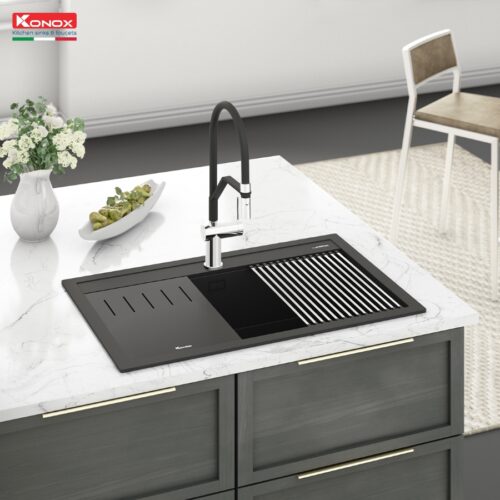 Terra 790S Black là một trong những model đẳng cấp nhất thuộc dòng chậu đá Granite của Konox. Được nhập khẩu nguyên chiếc từ Italia, sản phẩm đại diện cho sự kết hợp hoàn mỹ giữa tư duy thiết kế truyền thống của Ý và những đổi mới đột phá về vật liệu. Sắc đen (Black) quyền lực của Terra 790S mang đến vẻ đẹp vĩnh cửu, biến khu vực chậu rửa thành tâm điểm sang trọng nhất trong không gian bếp Việt.