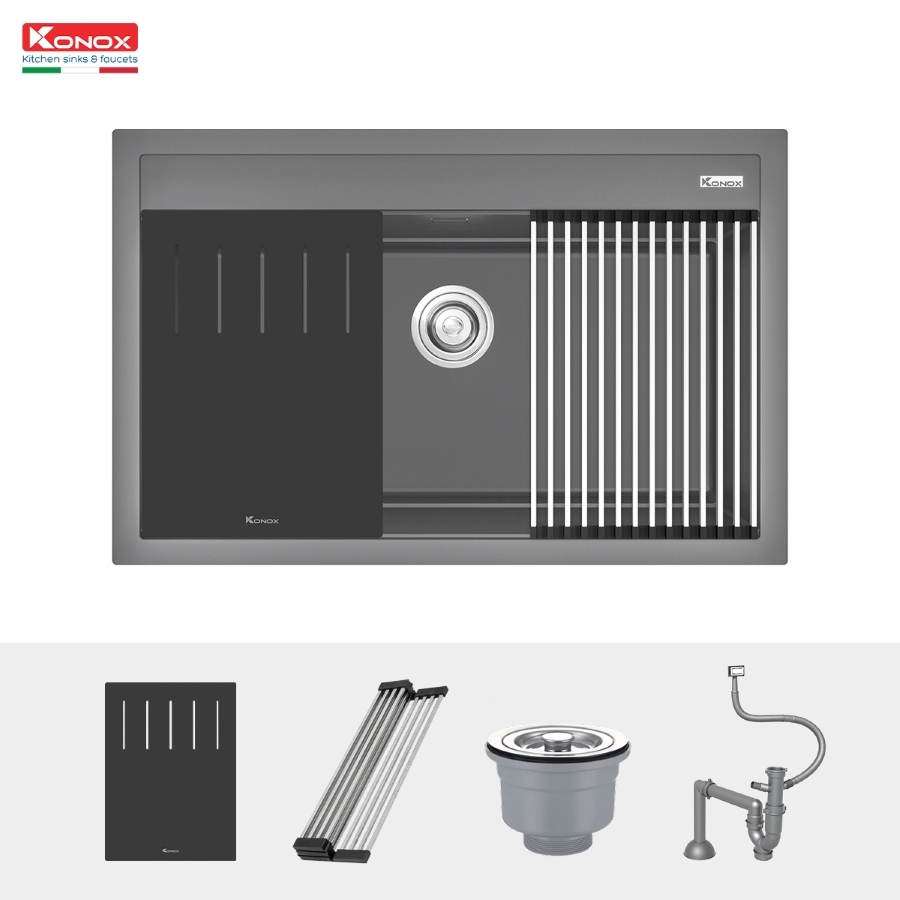 Đánh giá Chậu Rửa Bát Đá Konox Granite Terra 790S Grey - Nhập Italia