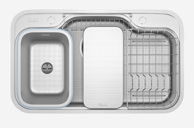 • Bộ phụ kiện đi kèm gồm những gì? Full set gồm Siphon, chậu rửa nhỏ, thớt inox, giá úp bát và rổ phụ gắn thành chậu chuyên dụng.