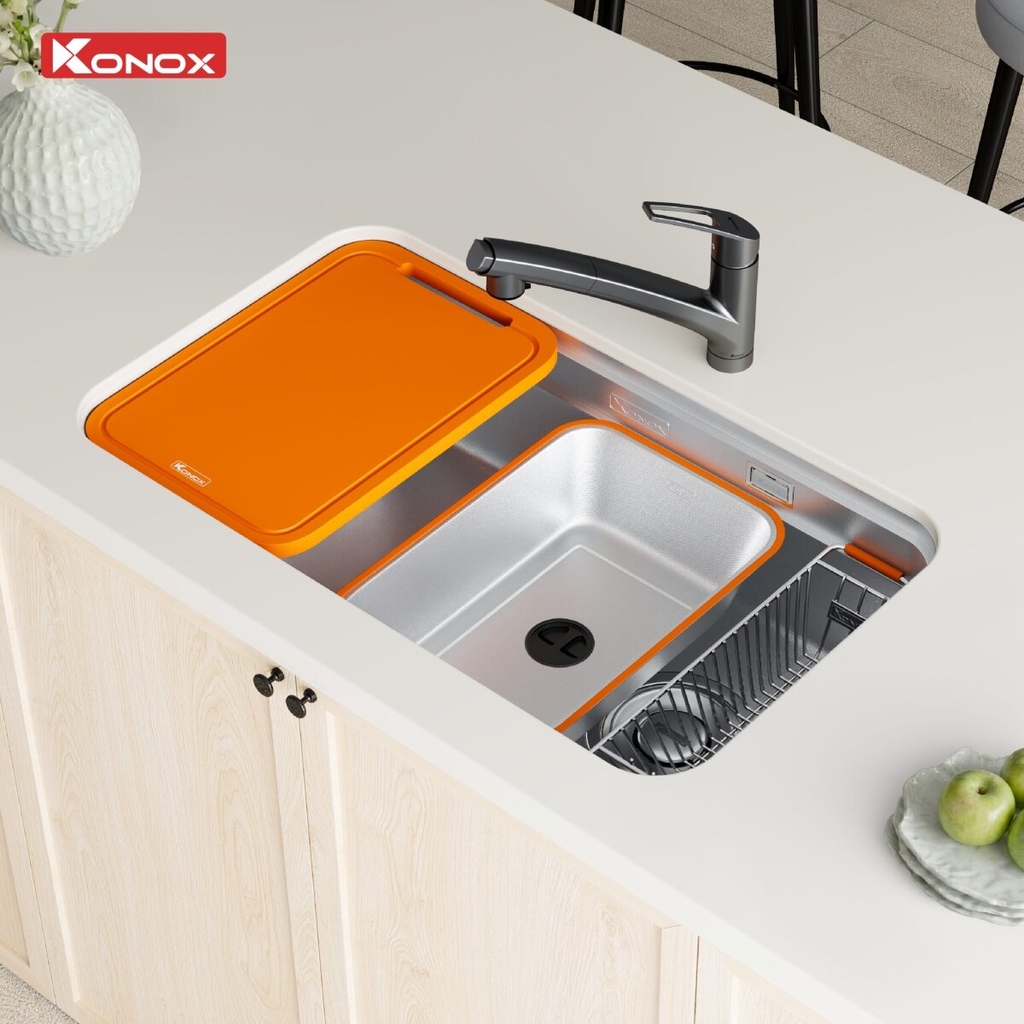 • Bộ phụ kiện Full set: Gồm thớt nhựa kháng khuẩn, colander và rổ phụ, đáp ứng trọn vẹn nhu cầu dọn rửa.