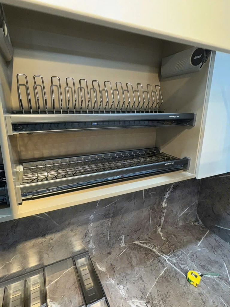 Tổng quan nhanh : Giá bát cố định - Nan Oval SUS304 - 2 tầng - Khay hứng nước đôi viền nhôm - Rộng 600–900mm - Lắp cố định trong khoang tủ.