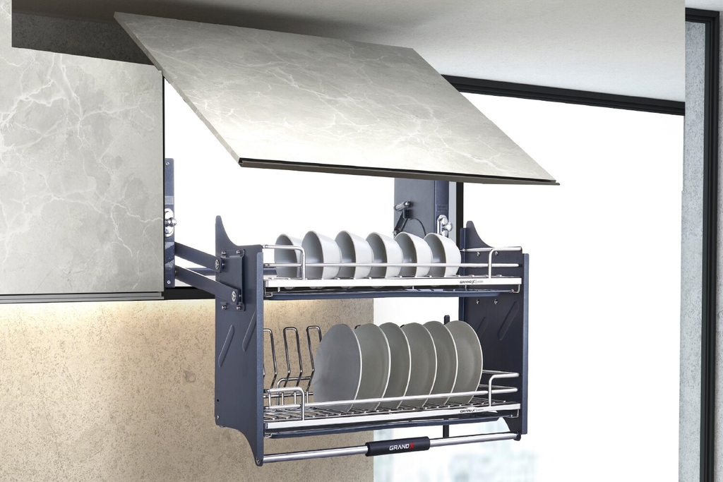 | Loại sản phẩm / Kiểu dáng | Giá bát đĩa nâng hạ – lắp trong tủ bếp trên |