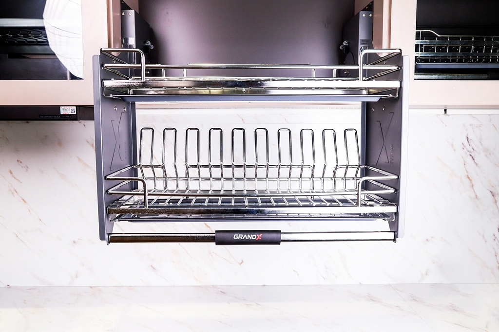 Giá bát nâng hạ GrandX XL.80M2 là dòng giá nâng hạ cao cấp nổi bật nhất của GrandX, sử dụng nan Oval SUS304 nguyên khối, khung Inox 304 màu xám đậm và bộ trợ lực tinh chỉnh thông minh.