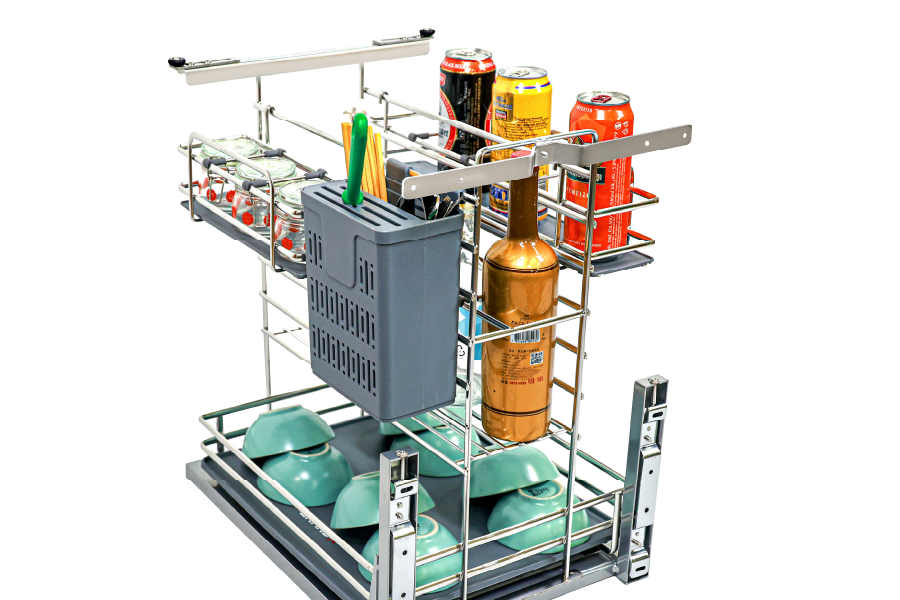 Trong các hệ tủ bếp cánh kéo hiện đại, việc lưu trữ đồng thời gia vị, dao thớt và dụng cụ ăn uống đòi hỏi một giải pháp vừa gọn gàng, vừa đảm bảo an toàn và dễ thao tác. Những thiết kế thông thường khó đáp ứng được cả công năng lẫn độ bền khi sử dụng lâu dài.