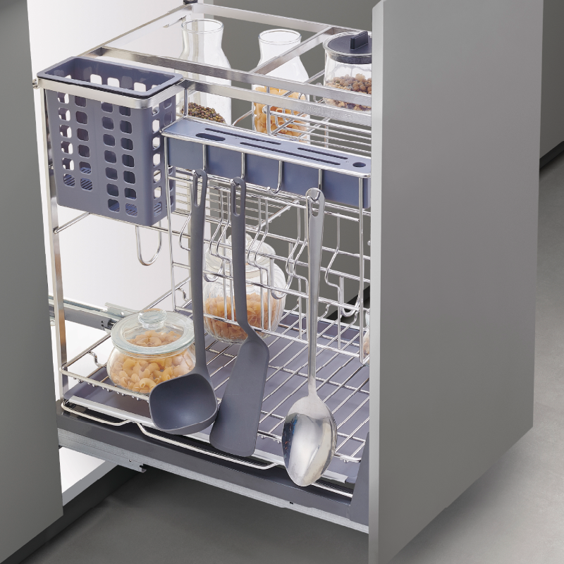 Mẫu giá này phù hợp với gia đình sử dụng tủ bếp cánh kéo rộng 400 mm, mong muốn một giải pháp lưu trữ đa năng, bền bỉ và dễ sử dụng. Những ai đề cao sự tiện lợi và ổn định lâu dài trong quá trình sử dụng sẽ đánh giá cao thiết kế này.