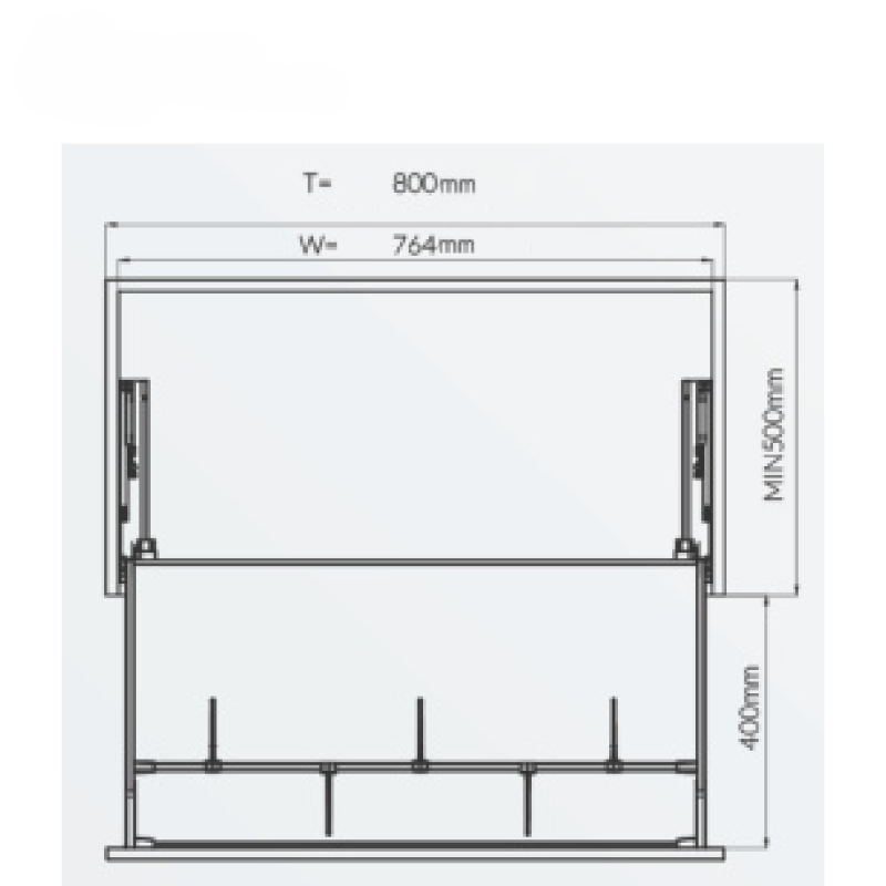 Tủ bếp nhà tôi rộng 800mm có lắp vừa không? Hoàn toàn vừa. Model XP.80T được thiết kế chuẩn xác cho khoang tủ có chiều rộng phủ bì 800mm (lọt lòng 764mm).