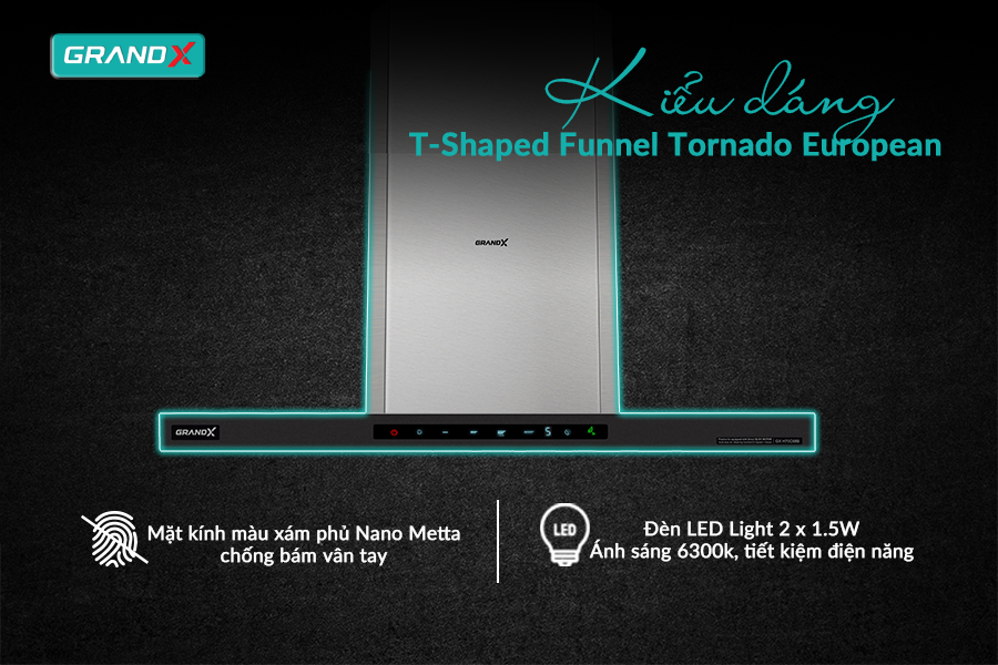| Loại sản phẩm / Kiểu dáng | Hút mùi chữ T – T-Shaped Funnel Tornado European |