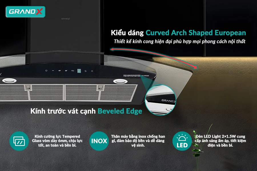 Tại sao nên chọn Hút mùi kính cong GrandX GX H90C62M?