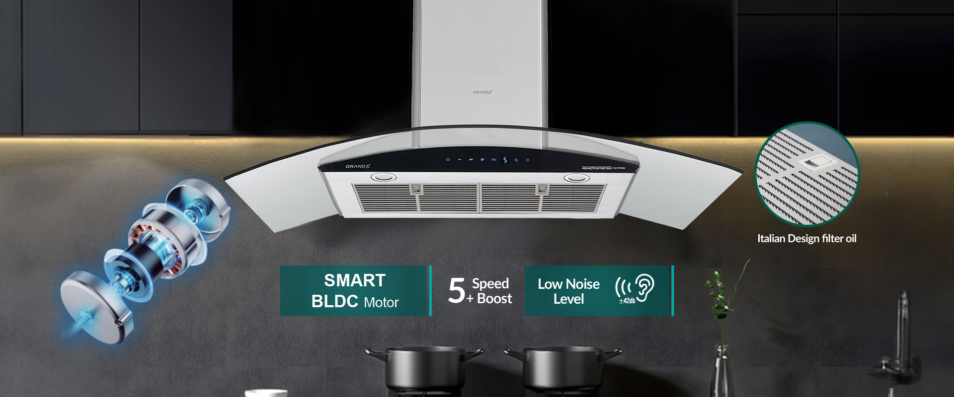 Không gian bếp sạch, thoáng và đẹp là yếu tố làm nên trải nghiệm nấu nướng dễ chịu mỗi ngày. Hút mùi kính cong GrandX GX H90C62S là model tiêu biểu cho dòng kính cong châu Âu hiện đại, hội tụ cả hiệu suất mạnh, thiết kế sang trọng, và vận hành siêu êm chỉ khoảng ±42dB. Với công suất hút ±1050m³/h và động cơ Smart Inverter BLDC tiết kiệm điện, đây là lựa chọn lý tưởng cho gia đình nấu ăn thường xuyên — đặc biệt là bếp có thói quen chiên xào.