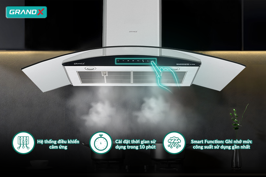HÚT MÙI KÍNH CONG GRANDX GX H90C62S – TRẢI NGHIỆM SẠCH – SANG – MẠNH MẼ VỚI ĐỘNG CƠ BLDC ±1050m³/h