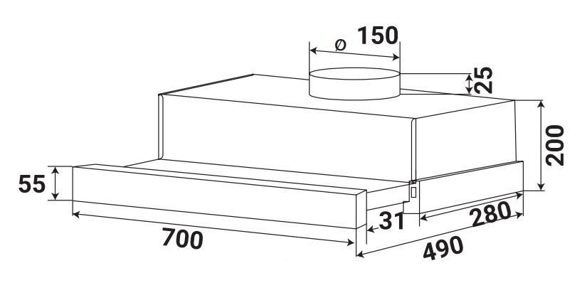 | Kiểu dáng | Máy hút mùi âm tủ kéo rút (70cm) |