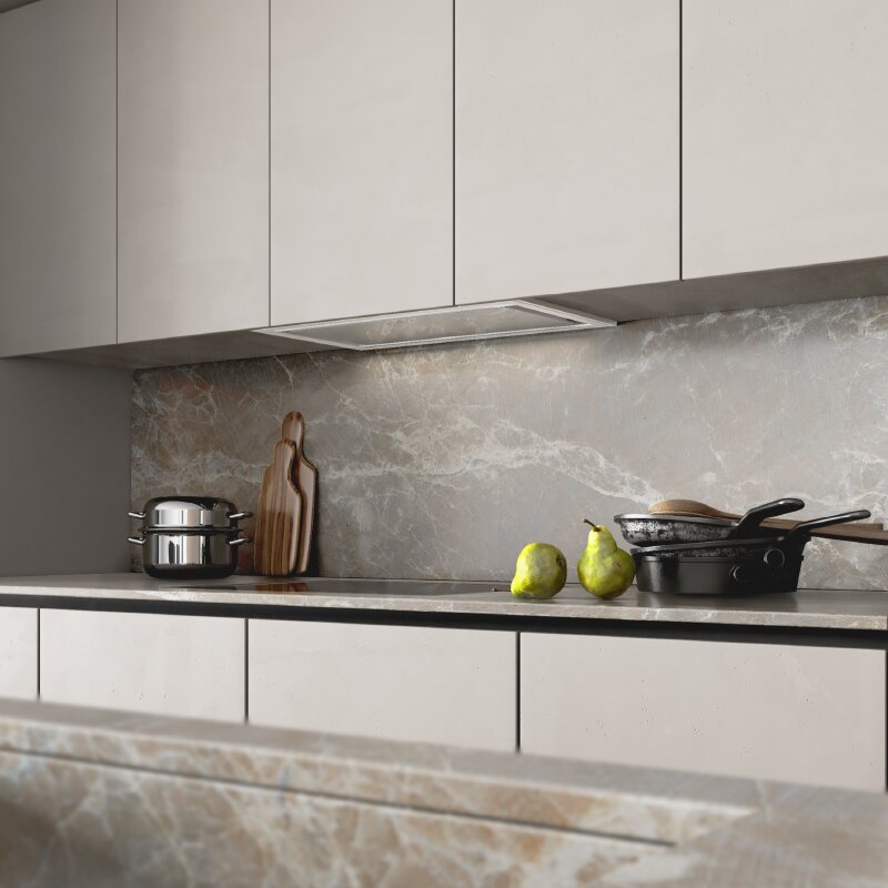 Thiết kế âm tủ rộng bảy mươi bốn xăng-ti-mét kết hợp lực hút mạnh giúp xử lý mùi rất nhanh. Bếp nhỏ hoặc bếp chung cư hoàn toàn phù hợp khi dùng mức hút trung bình hoặc cao.