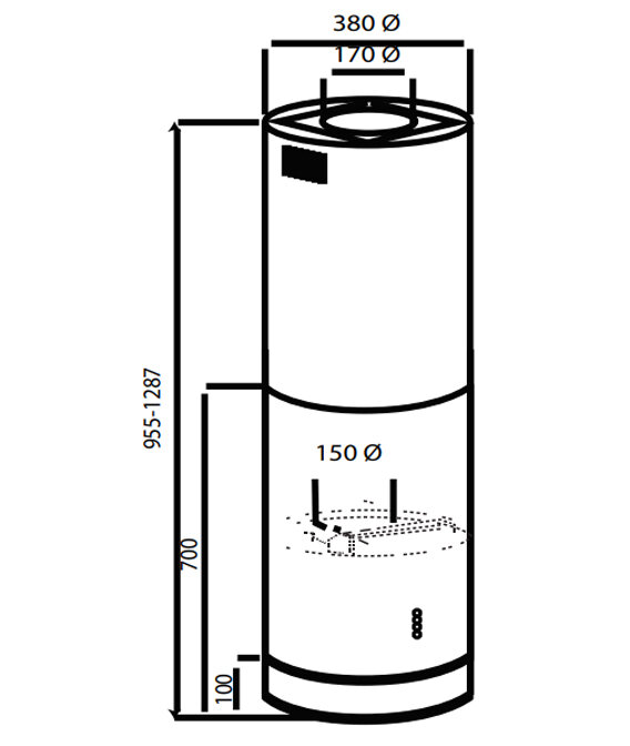 | Kiểu dáng | Máy hút mùi áp tường trụ tròn |