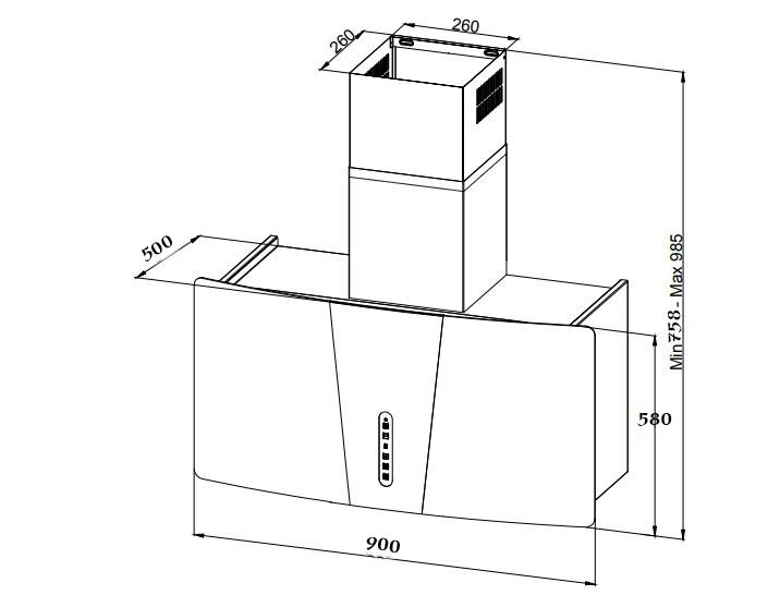 Sải kính rộng: Kích thước 900mm đặc biệt phù hợp cho các căn bếp rộng, bao phủ hoàn hảo các dòng bếp 3-4 vùng nấu lớn, ngăn không cho khói mùi phát tán ra xung quanh.