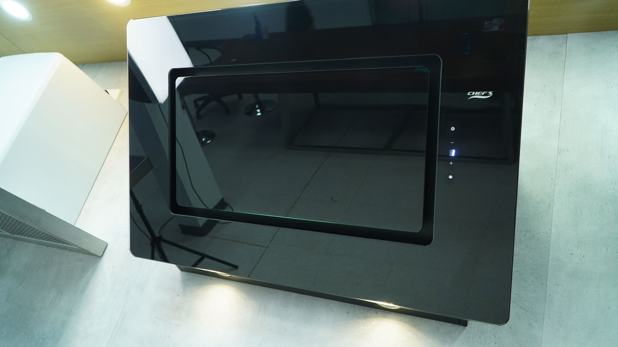 Khác với các dòng kính cong hay chữ T truyền thống, Chefs EH-R705E9 đại diện cho xu hướng thiết kế Head-free hiện đại. Với mặt kính vát nghiêng đen tuyền, sản phẩm không chỉ giải phóng tầm nhìn mà còn tạo nên một "bẫy mùi" khổng lồ, thu gom sạch sẽ khói bếp ngay khi vừa phát sinh.