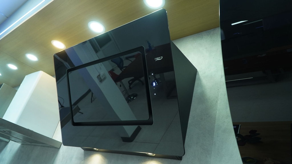 Thẩm mỹ tối giản: Thân máy thép sơn tĩnh điện đen kết hợp mặt kính cao cấp tạo nên khối kiến trúc tinh tế cho gian bếp, đặc biệt phù hợp với các căn hộ chung cư cao cấp.