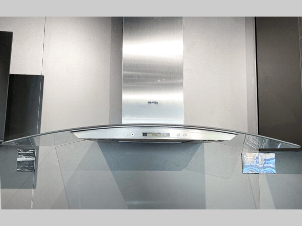 • Kiểu dáng kính cong sang trọng: Kích thước 900mm với mặt kính cường lực uốn cong tinh tế, giúp tối ưu hóa khả năng thu gom khói mùi và tạo cảm giác nhẹ nhàng, thanh thoát cho hệ thống tủ bếp.