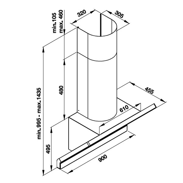 Với kích thước chiều ngang 900mm và chiều sâu 455mm, người dùng cần chuẩn bị không gian gắn tường đủ rộng để máy đạt được độ cân bằng thẩm mỹ. Hãy ưu tiên phương thức hút thông gió trực tiếp ra ngoài bằng ống thoát phi 150mm để tối ưu hóa độ ồn và công suất hút 722 m3/h.