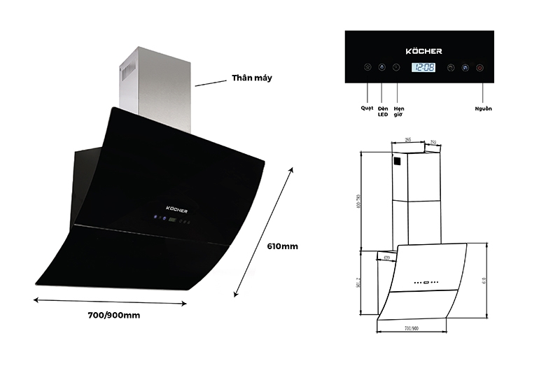 Đánh giá Máy hút mùi KOCHER K-2080E - Vát kính tự động - Siêu êm 46dB