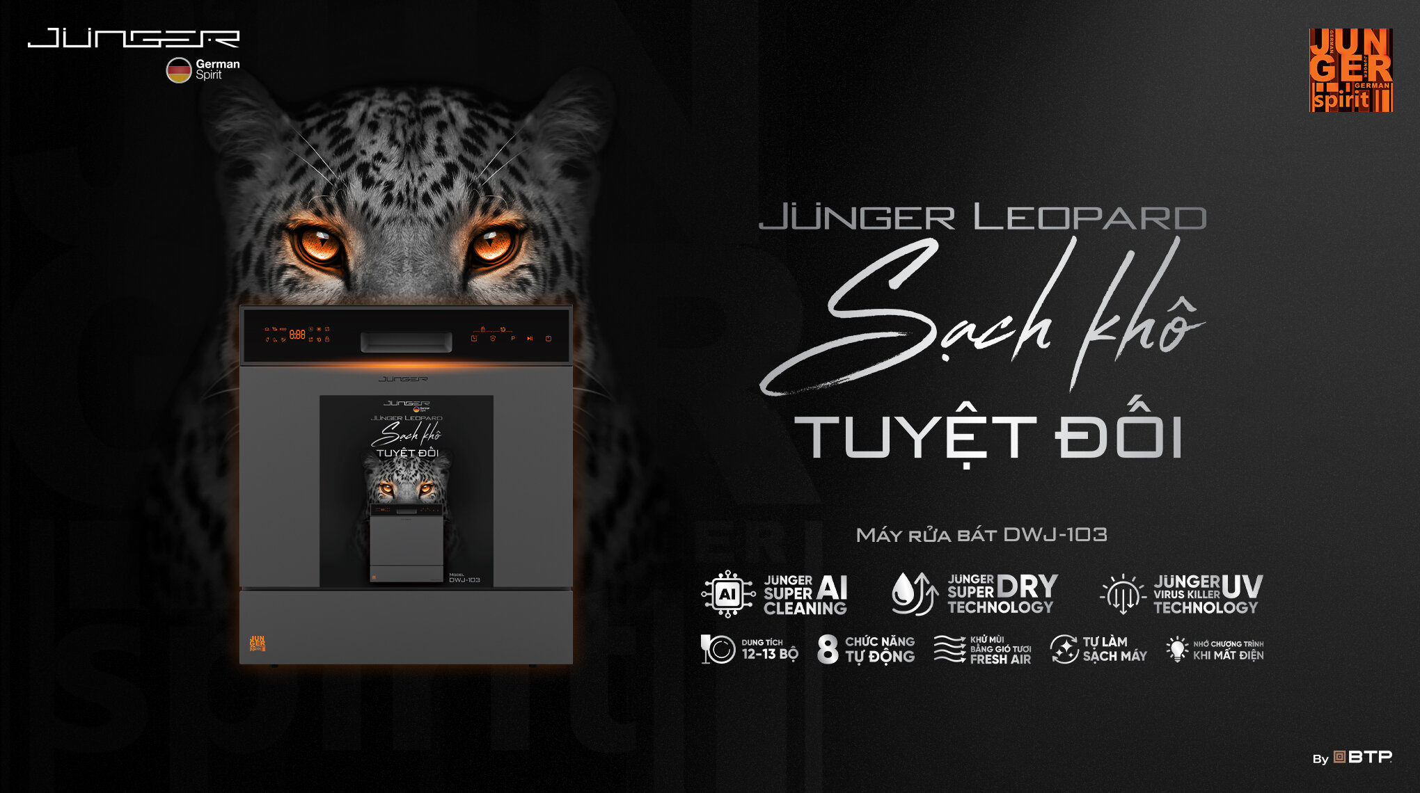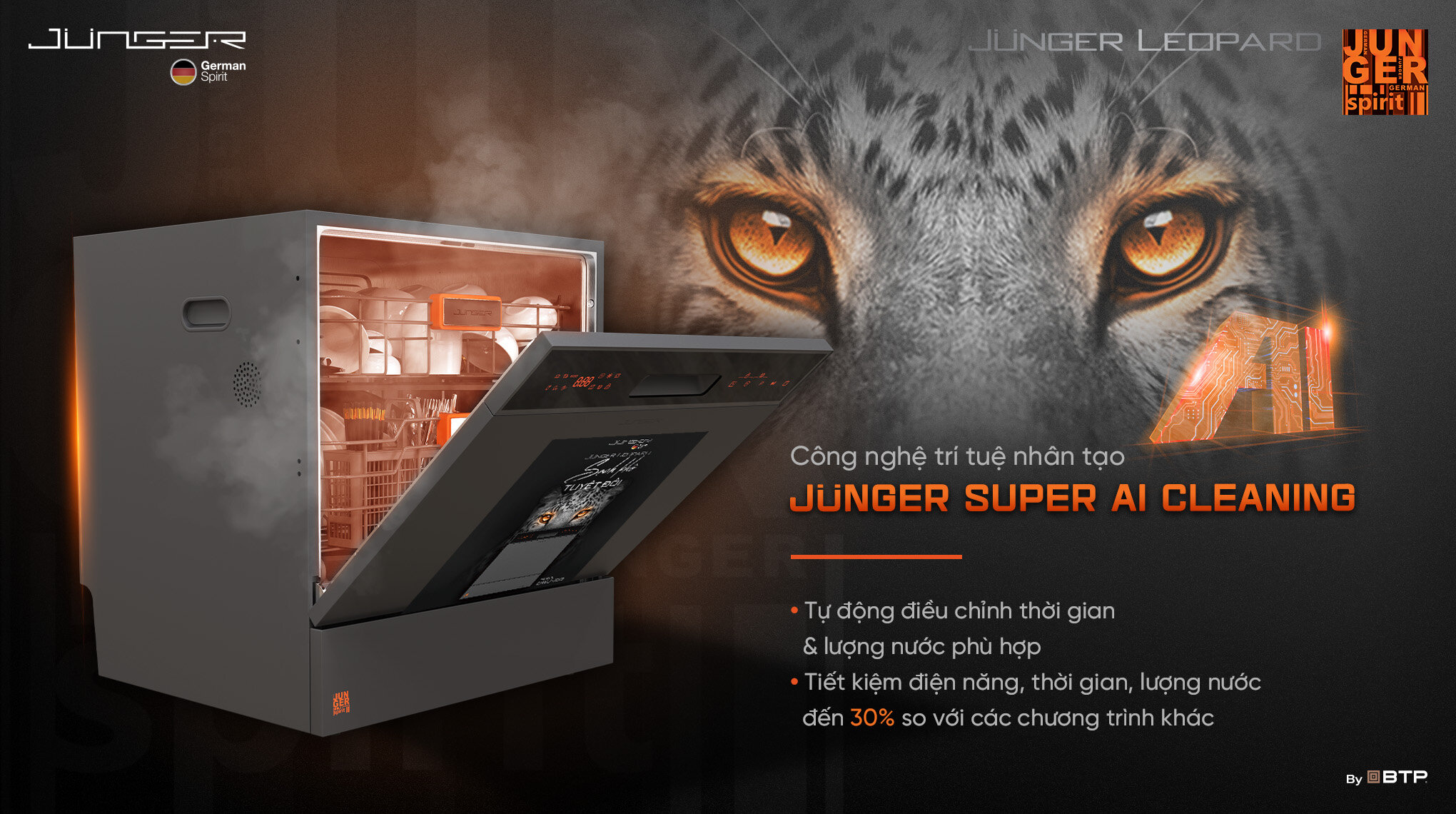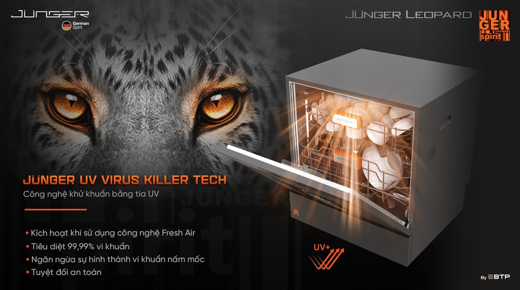 Máy rửa bát Junger JG Leopard DWJ-103 tích hợp 4 công nghệ cốt lõi, tạo nên hiệu quả “sạch khô tuyệt đối”: