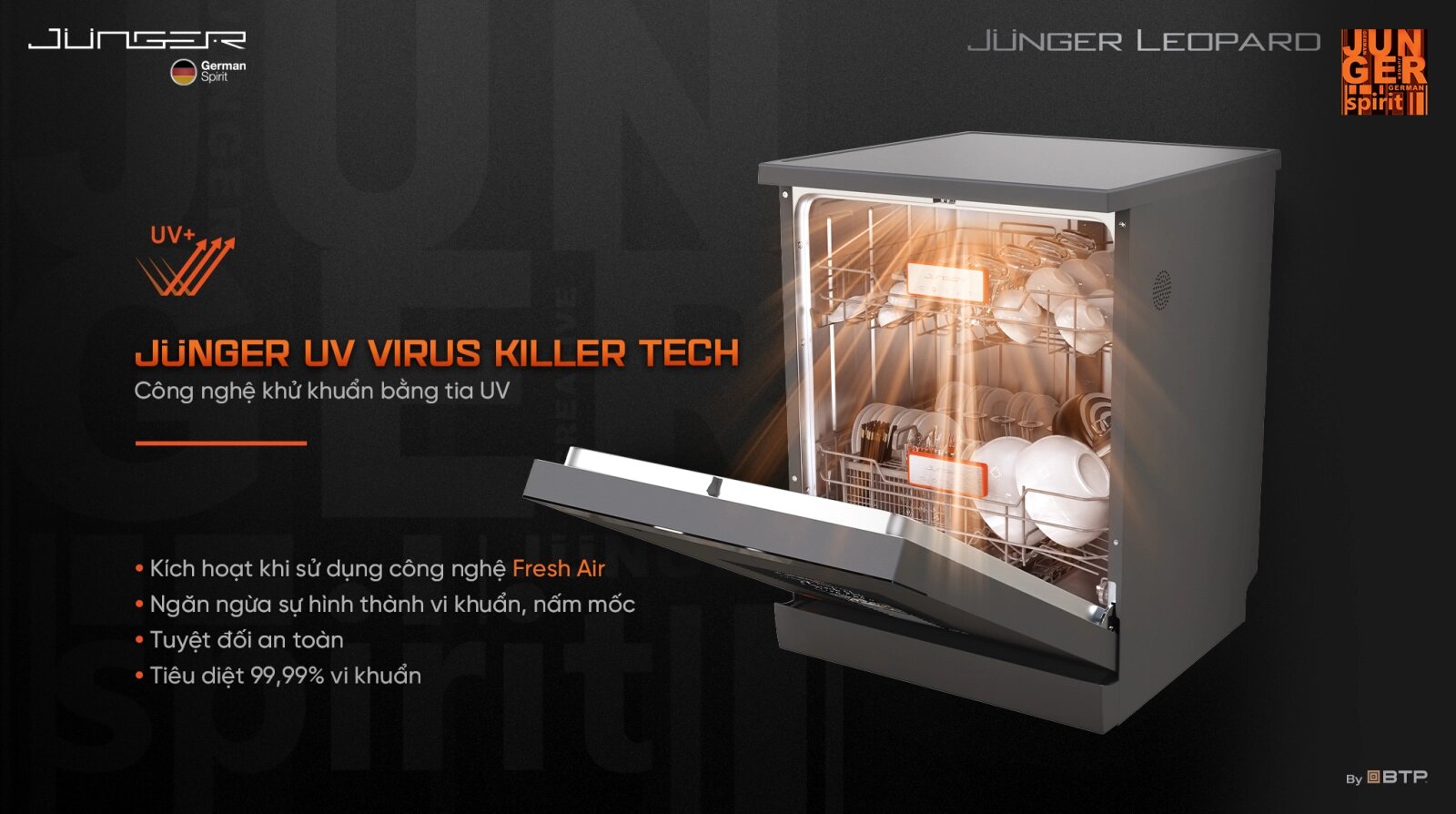 Máy rửa bát Junger JG Leopard DWJ-143 – Sạch Khô Tuyệt Đối Chuẩn Đức